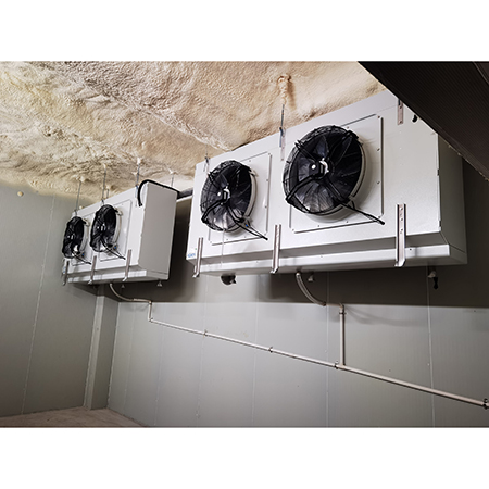 利用壓縮機排氣的高溫制冷劑來化霜,環(huán)保節(jié)能; 自動熱氟融霜,除霜速度快、效果好、能耗??; 自動熱氟融霜是靠電腦自動化控制的,當冷庫內需要融霜時